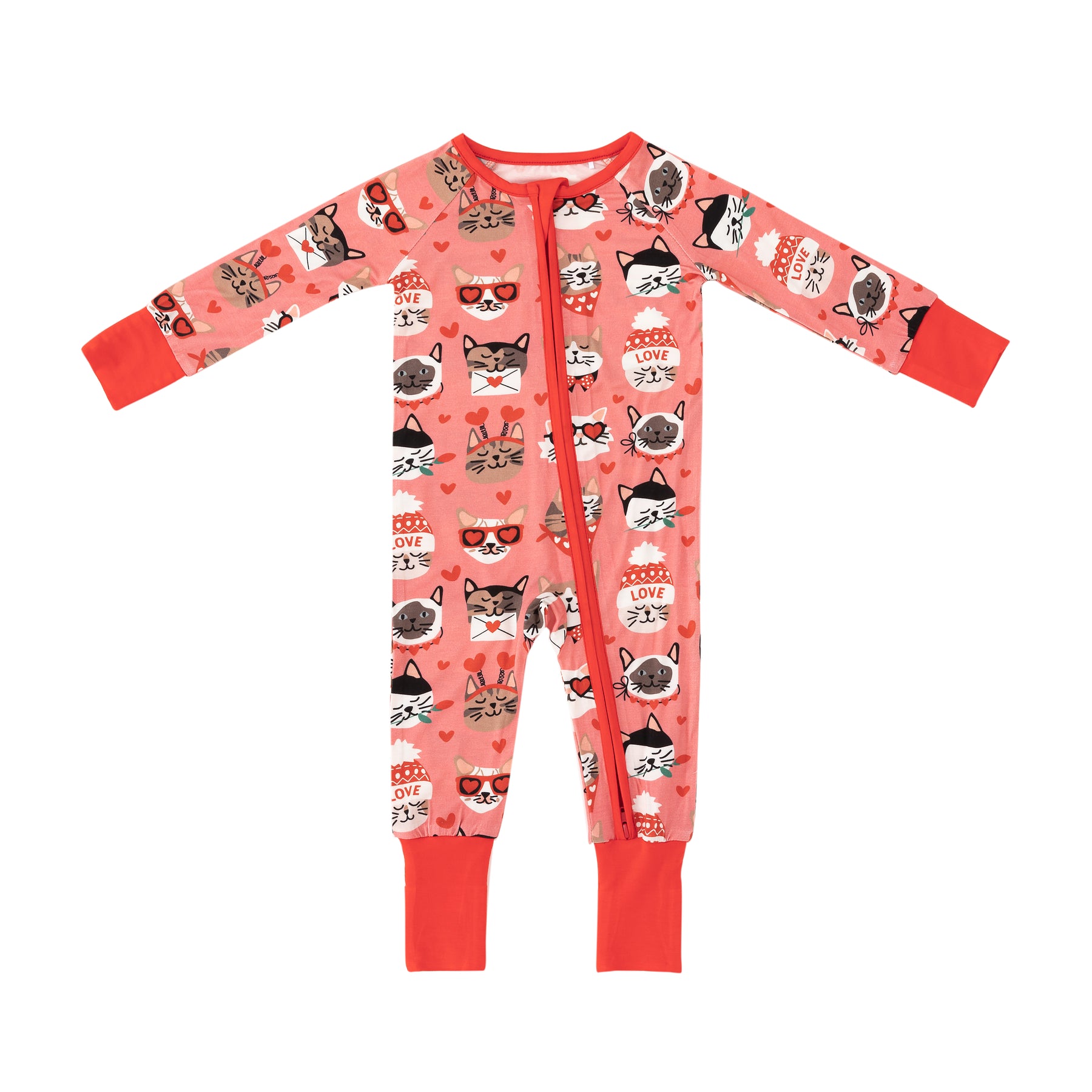 Purrfectly Loved (Convertible Zip Footies) - Warm Rose