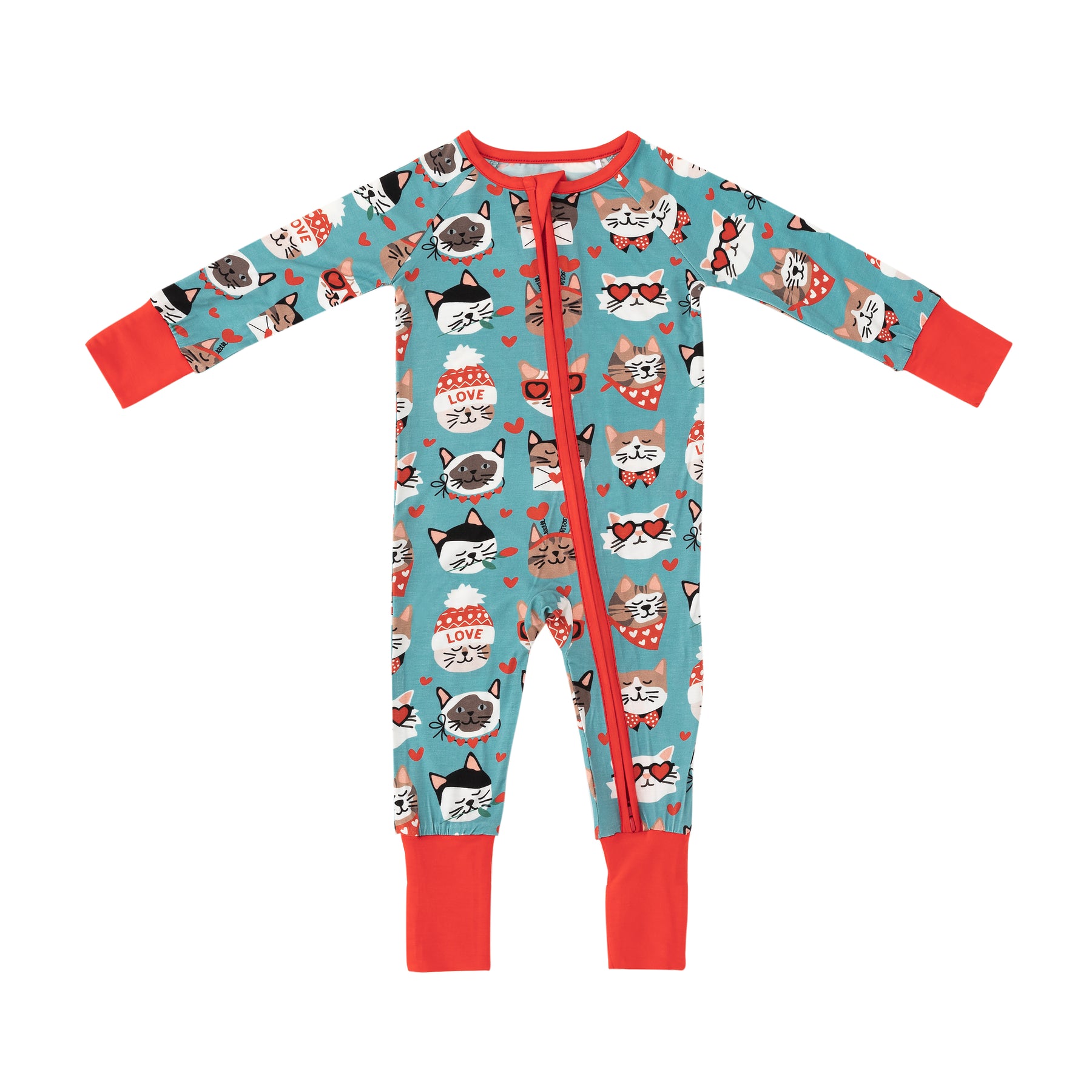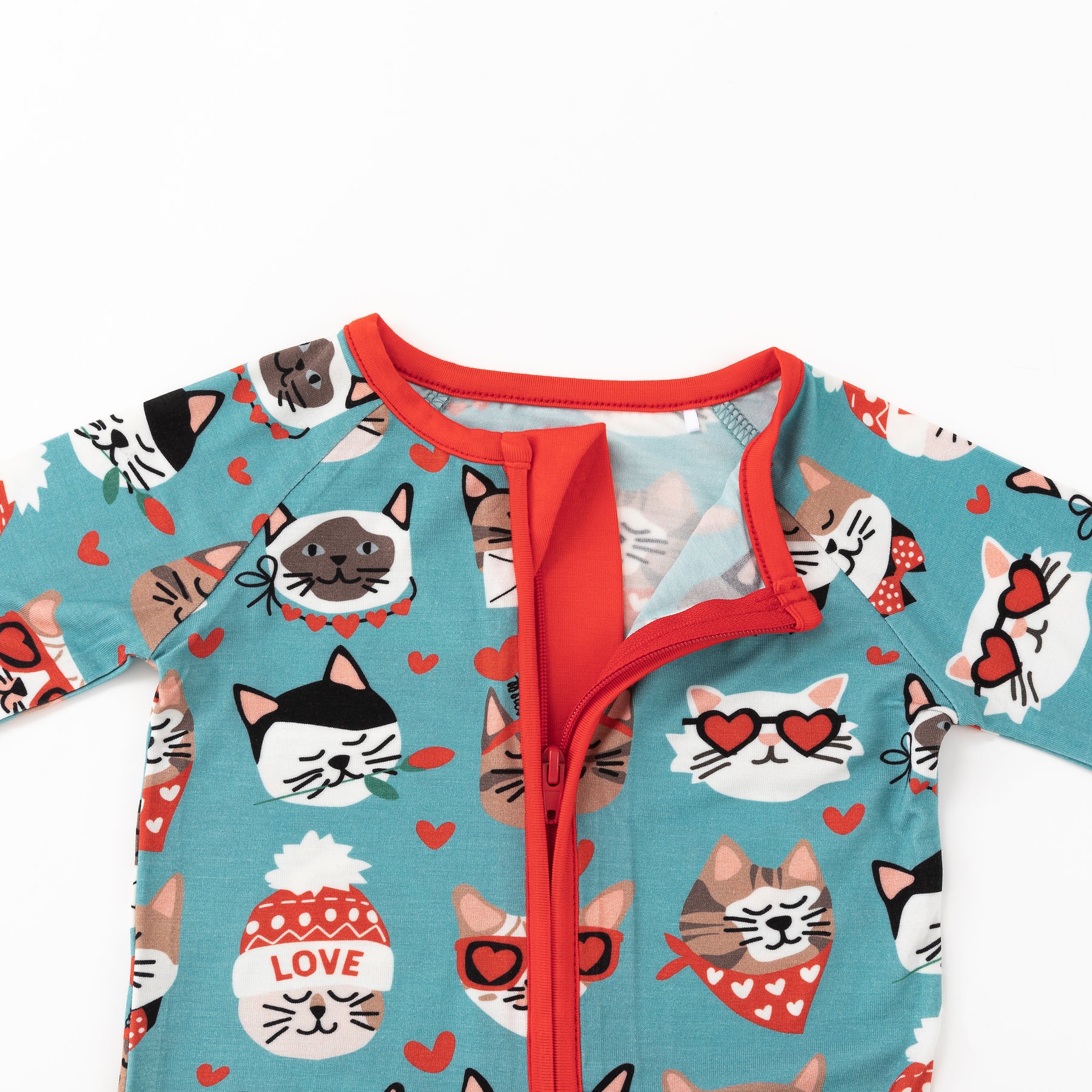 Purrfectly Loved (Convertible Zip Footies) - Heirloom Blue